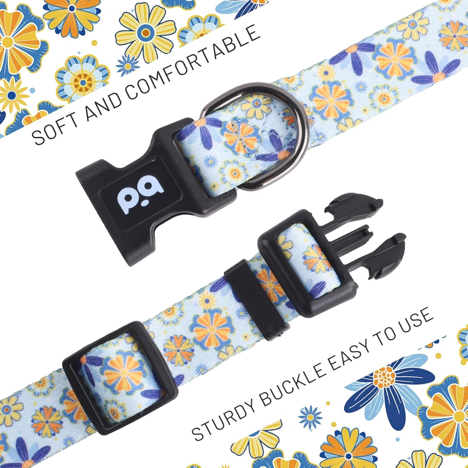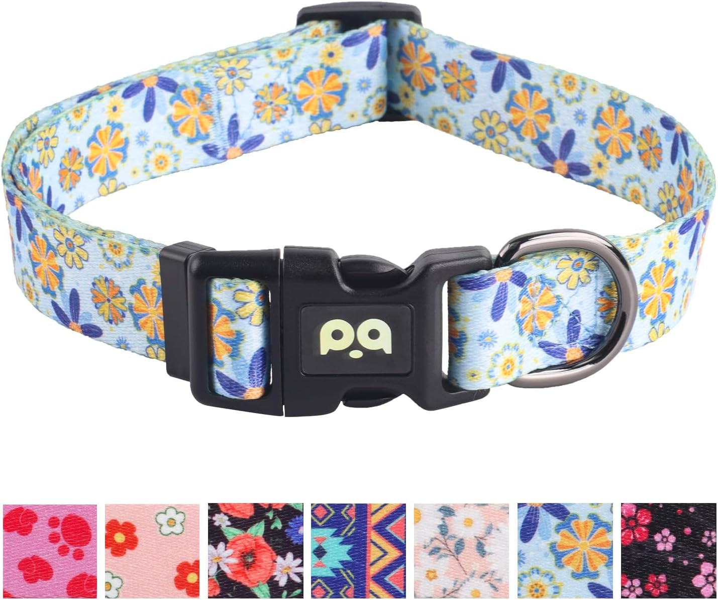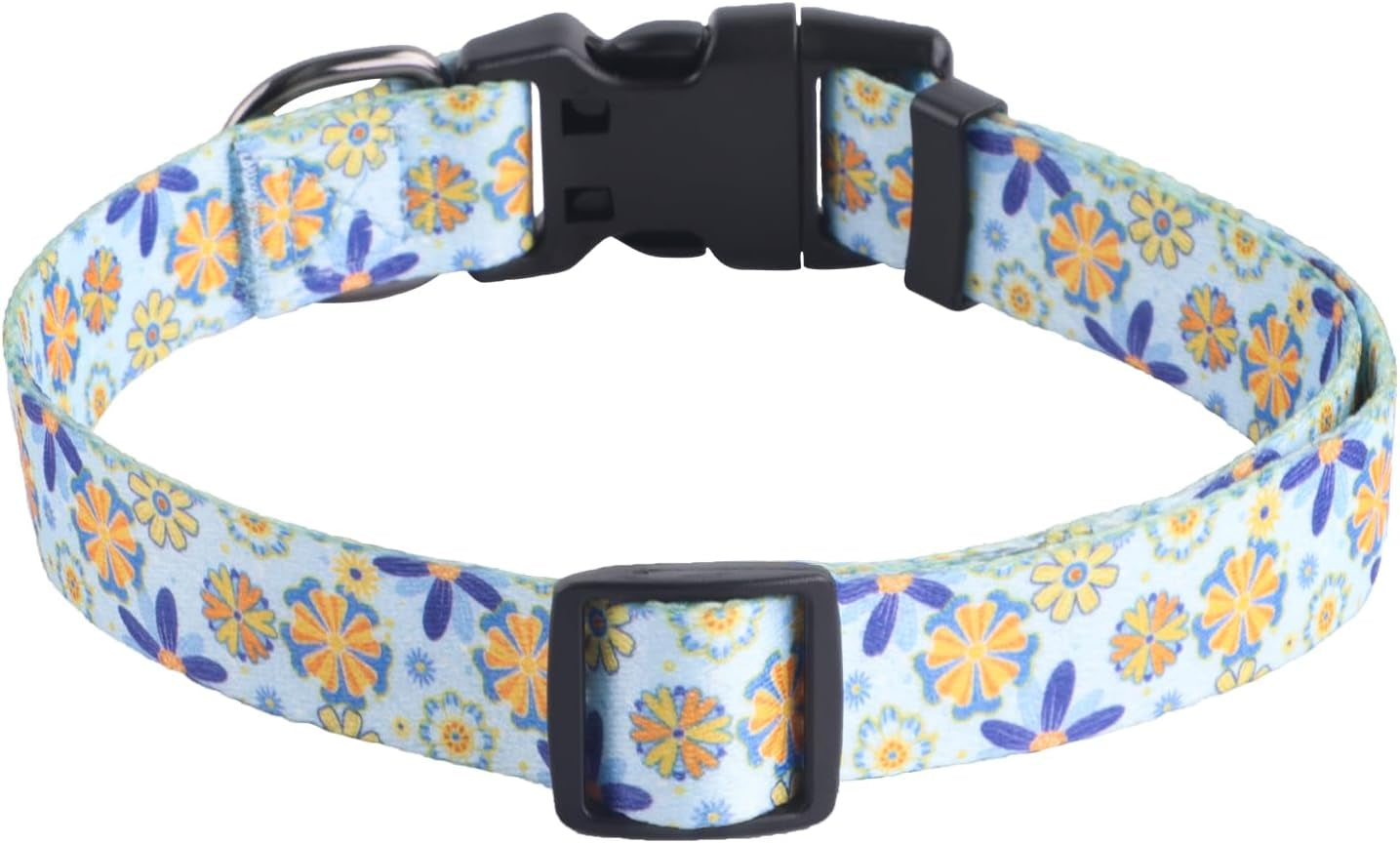 Adjustable Soft Dog Collar: Print Flower Pink Multicolor Cute Patterns for XS Small Medium Large Pet Girl Boy Puppy Walking Running Training