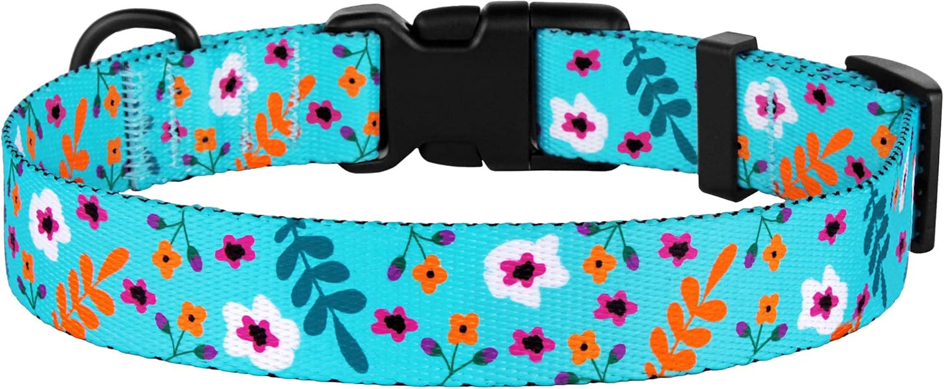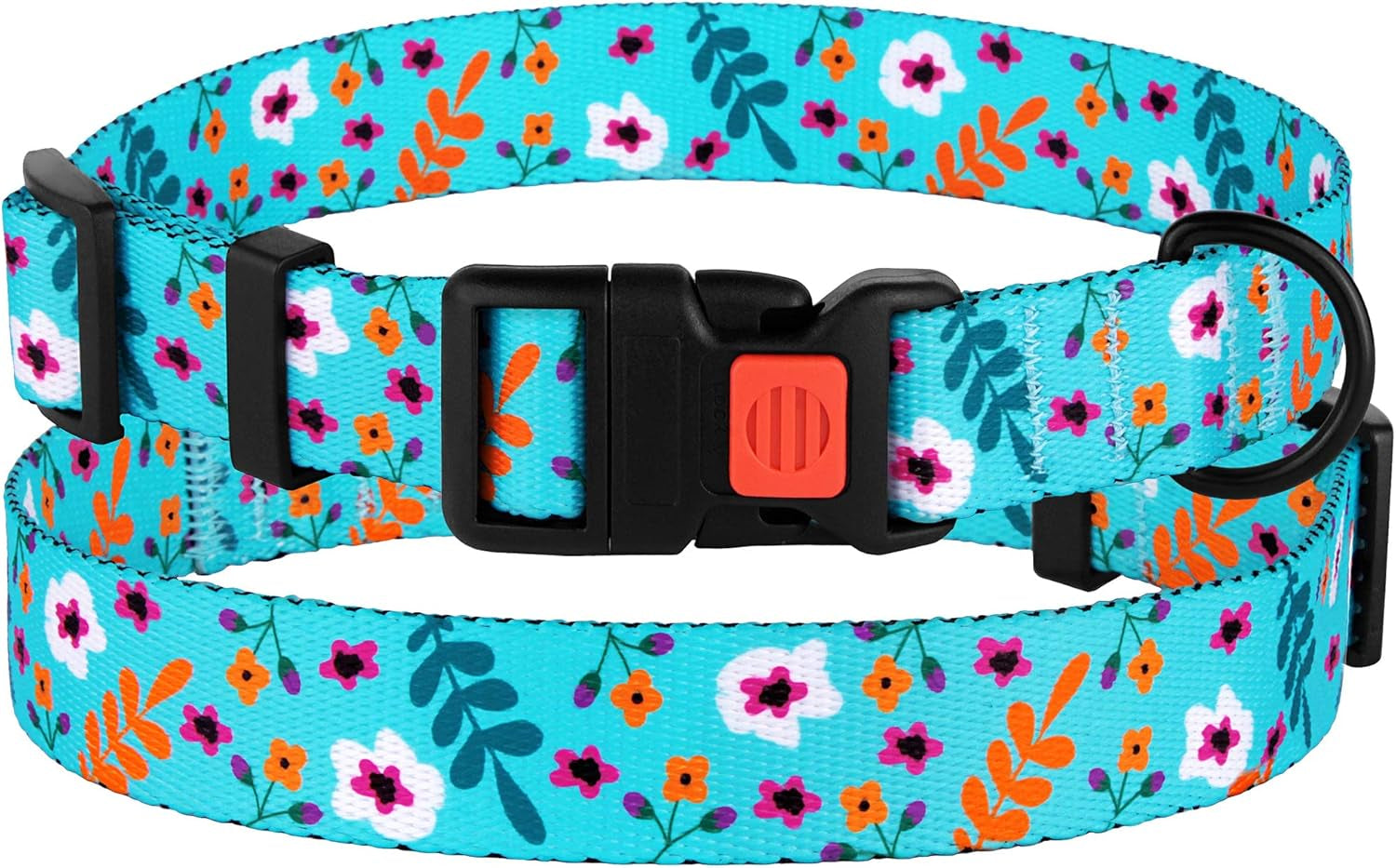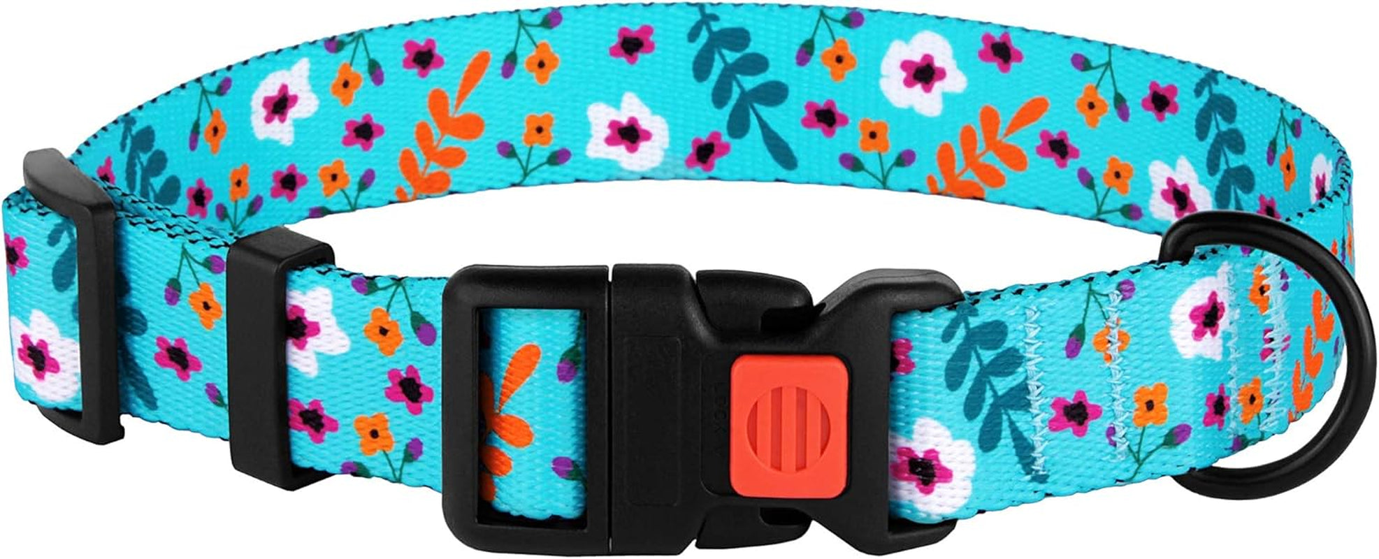 Floral Dog Collar Nylon Pattern Flower Print Adjustable Pet Collars for Dogs Small Medium Large Puppy (Neck Fit 10"-13", Aquamarine)