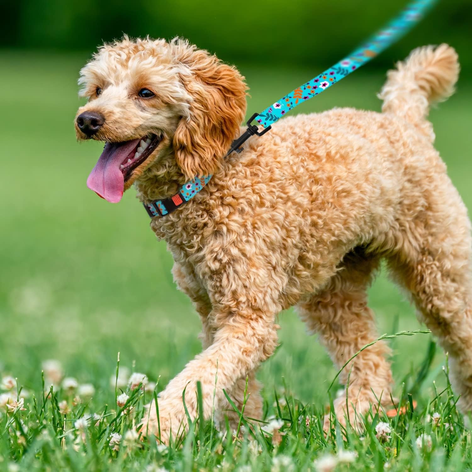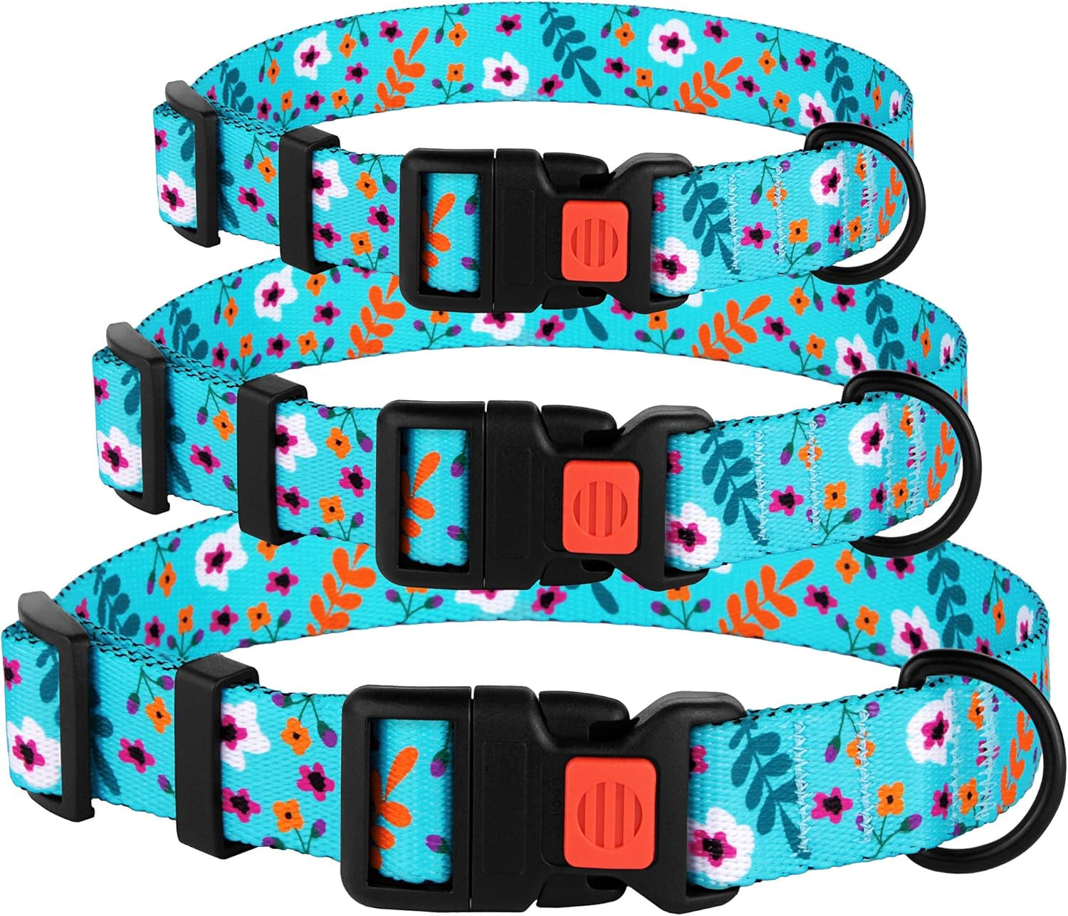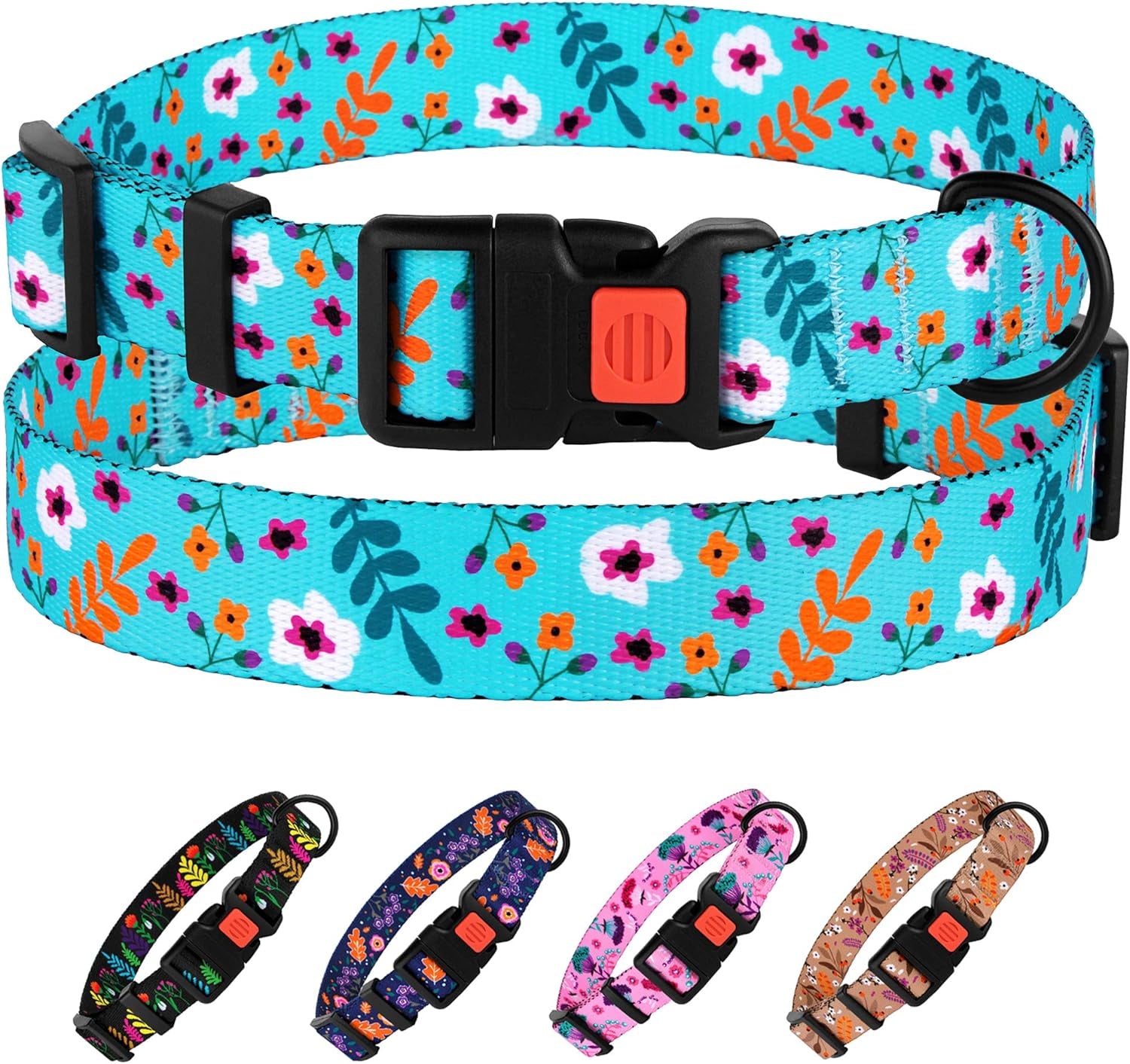 Floral Dog Collar Nylon Pattern Flower Print Adjustable Pet Collars for Dogs Small Medium Large Puppy (Neck Fit 10"-13", Aquamarine)