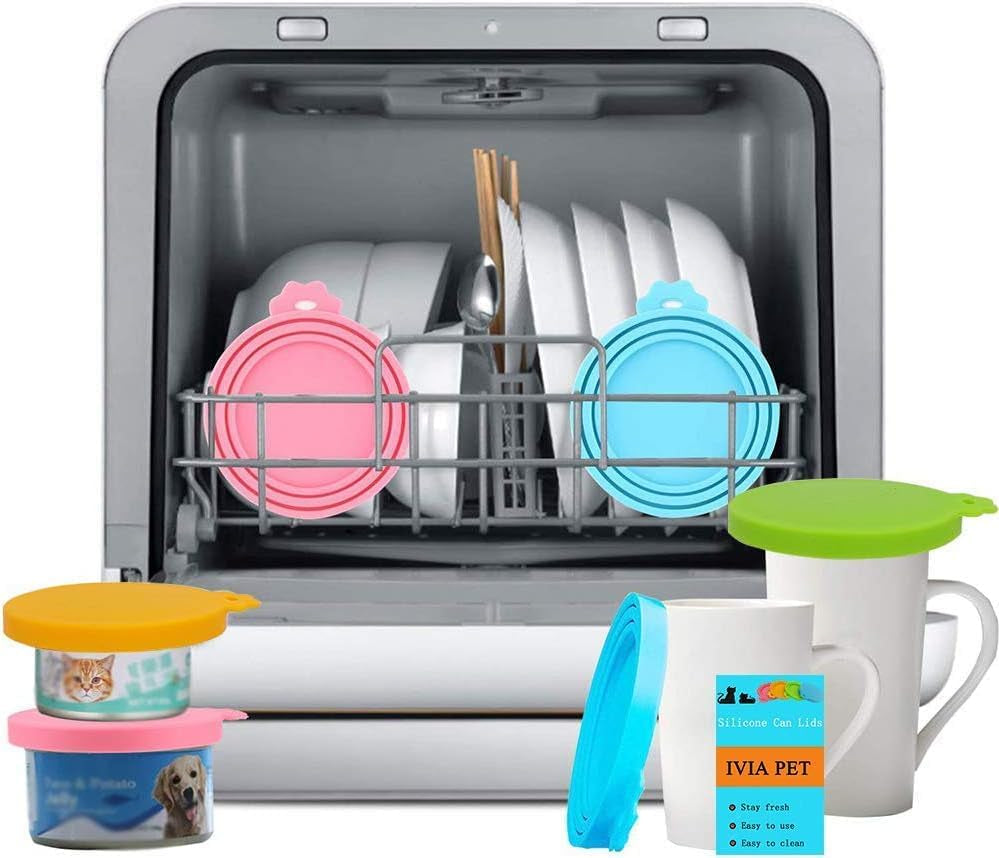 UNIVERSAL SIZE-- Multicolor pet food can covers have three different size rings for fit most standard size canned dog cat...